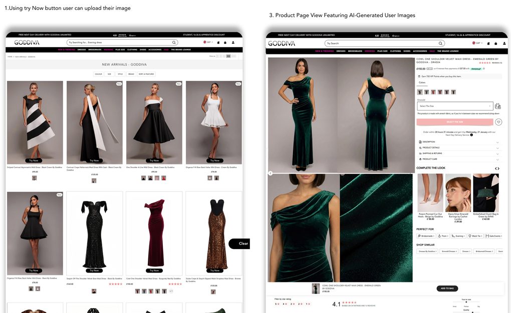 The platform is built entirely in-house, using Google Gemini alongside proprietary AI systems developed by Goddiva’s technology team. Privacy and trust are fundamental to the solution: the feature is fully GDPR-compliant, opt-in only, and customer images are processed solely to deliver the virtual try-on experience.