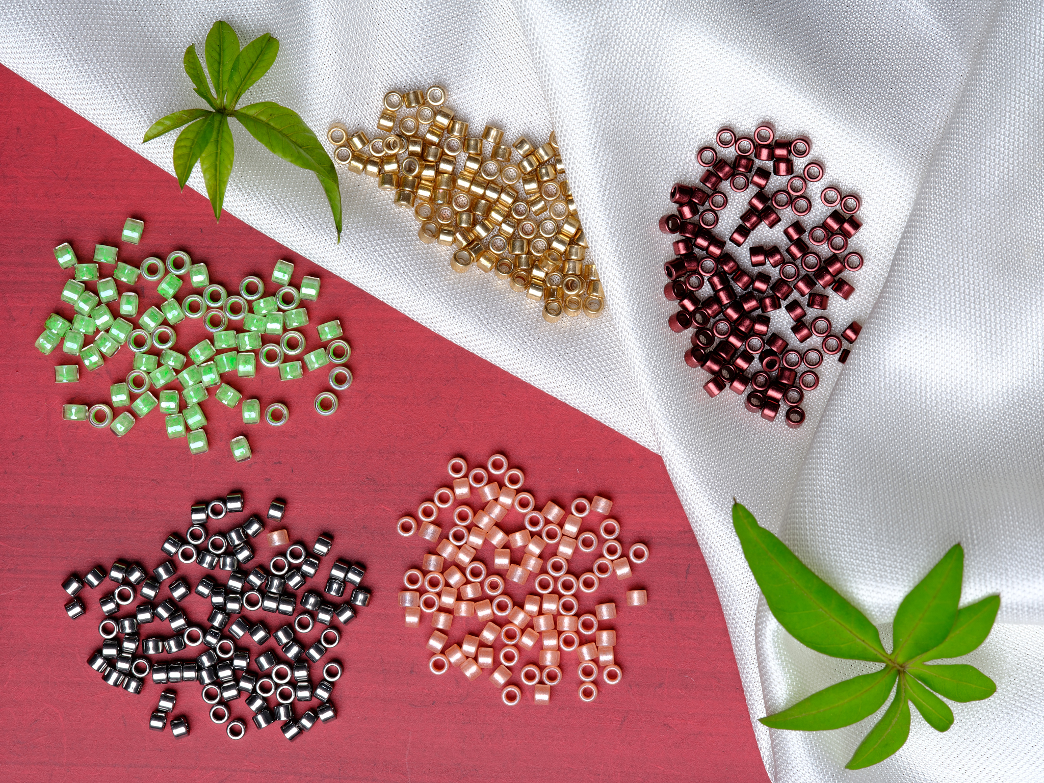Seed Beads, ranging from 1.2 mm to 4.5 mm, are available in multiple shapes including round, bugle, and hexagonal varieties.