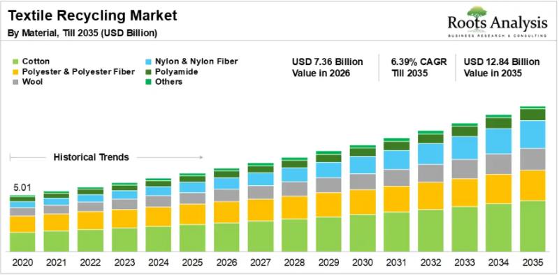 The global textile recycling market, valued at USD 5.01 billion in 2025, will expand to USD 7.36 billion in 2026 and reach USD 12.84 billion by 2035, advancing at a CAGR of 6.39% over the forecast period. The market’s trajectory reflects mounting pressure on fashion and manufacturing industries to redirect billions of kilograms of discarded textiles away from landfills and toward productive, circular use. For investors, brands, and policymakers, the growth math is straightforward: regulatory mandates are tightening globally, consumer expectations around sustainability are rising, and the economics of recycled fiber are improving as technology scales.