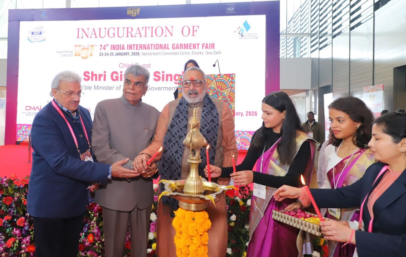 Shri Giriraj Singh, Hon’ble Union Minister for Textiles, inaugurated the 74th Edition of India International Garment Fair (IIGF), at Yashobhoomi, Dwarka, New Delhi on 23rd January 2026, in presence of exhibitors and international buyers. The inauguration was followed by the lamp lighting, unveiling of fair guide and Minister’s address. IIGF is one of Asia’s largest garment fairs bringing MSMEs and buyers together. The Minister also took rounds of stalls after the inauguration. Shri Giriraj Singh was the Chief Guest of the event.